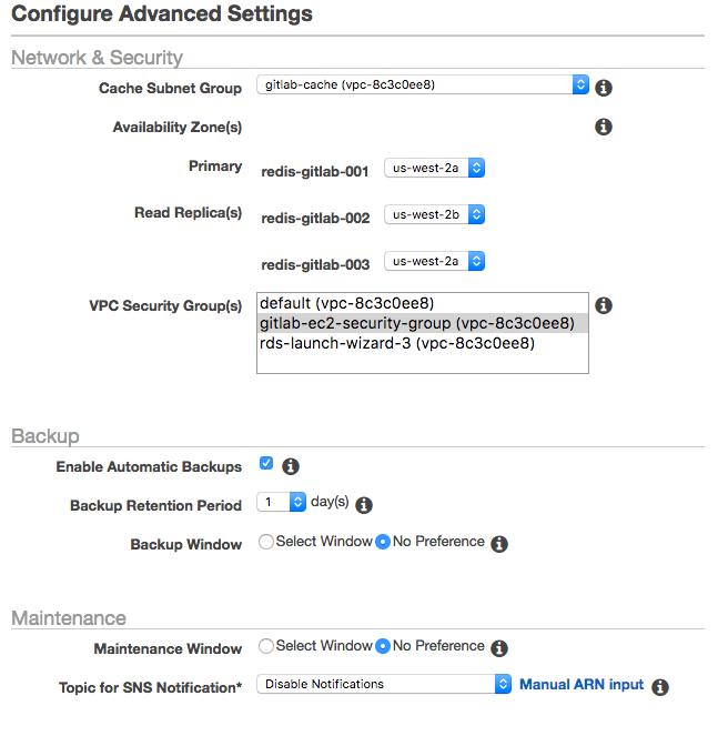 gitlab_rails['redis_host'] = "<redis-endpoint>"